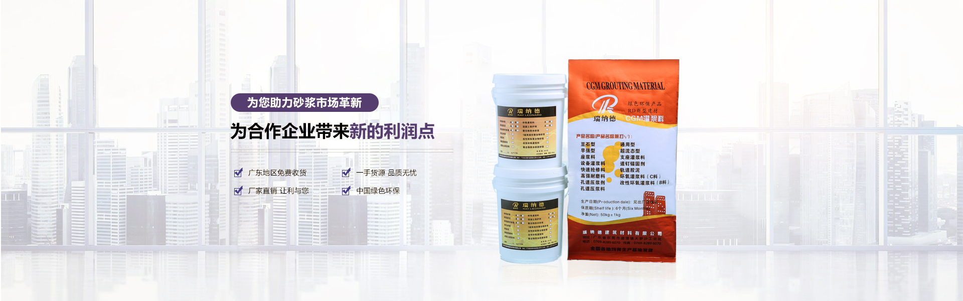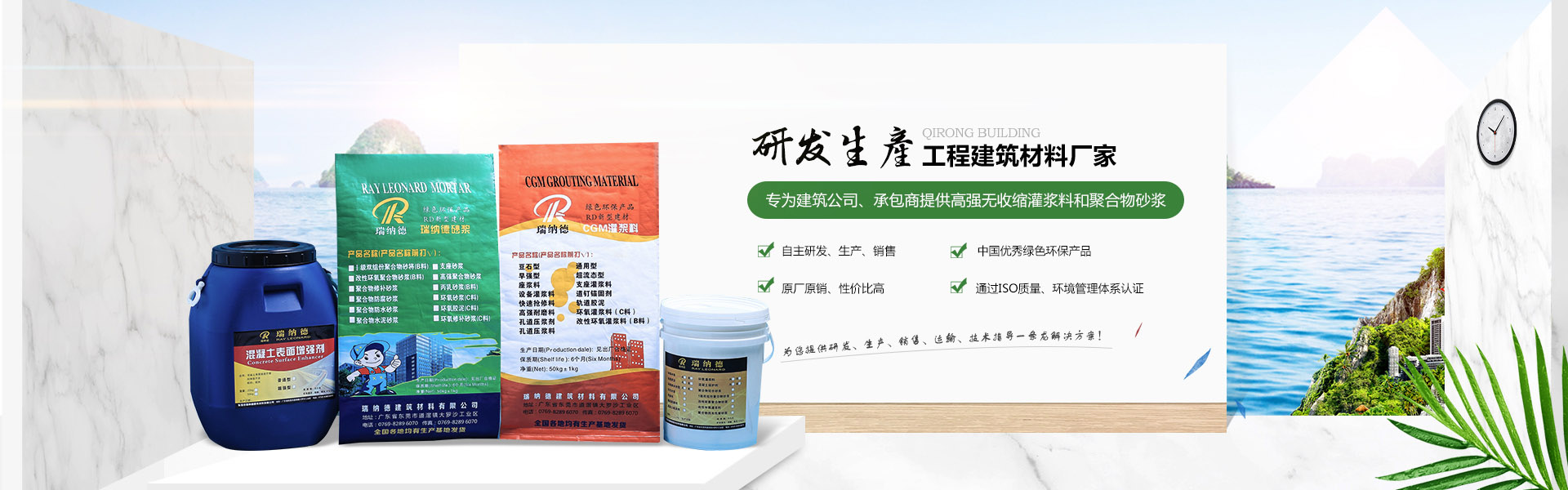 東莞市戚榮建筑材料有限公司是東莞市瑞納德建筑材料有限公司旗下子公司,是一家集研發、生產、銷售、技術服務為一體的技術型企業,,并通過ISO9001:2000質量管理體系及ISO14001:2004環境管理體系世界標準認證。現已在廣東、浙江、北京、河南鄭州、沈陽、重慶等均有生產基地。